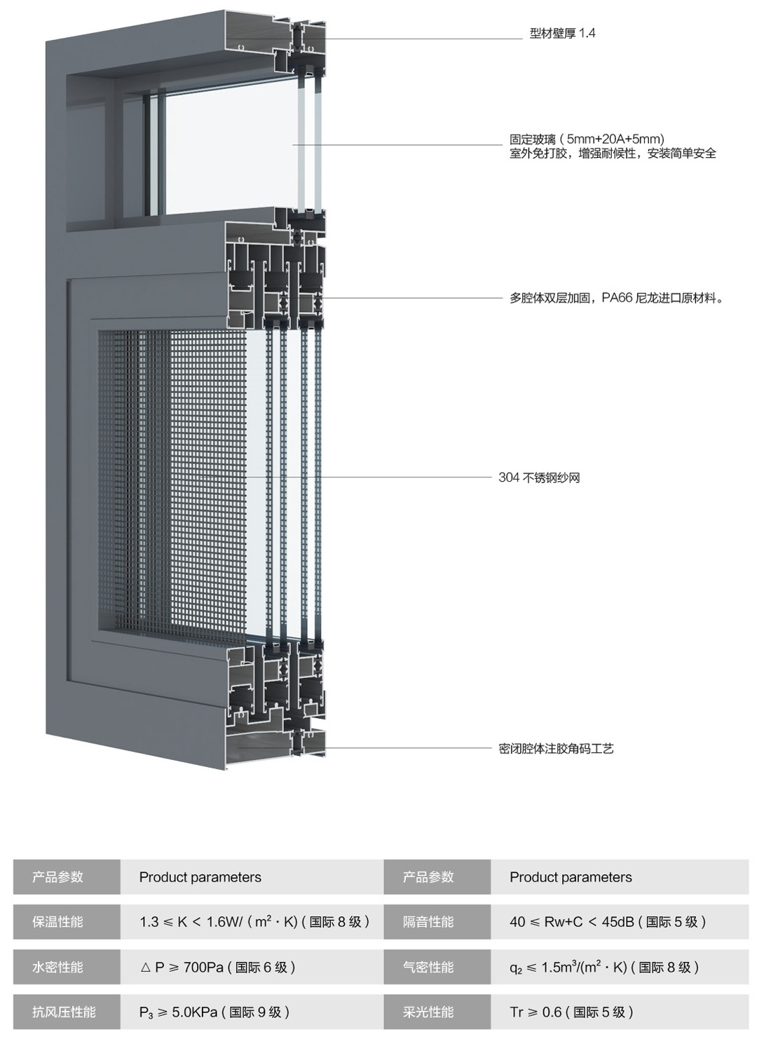產(chǎn)品型號(hào):93柏爵外開(kāi)系統(tǒng)平開(kāi)窗 窗紗一體系列